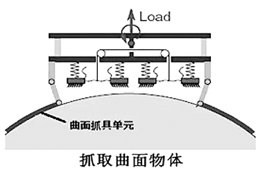 這種抓具分平面和曲面兩種單元,可依據(jù)物體形狀選擇。抓具單元表面覆有粘合墊,當(dāng)抓具沿特定方向施加壓力時(shí),依靠粘合墊抓牢物體;壓力消失后,粘合墊與物體分離。實(shí)驗(yàn)表明,一片相對(duì)較小的粘合墊可以抓住重達(dá)300公斤的物體。