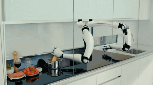 早在2015年,機器人公司Moley Robotics便展示了其最新產(chǎn)品——Moley機器人廚師,它由兩個可以自由移動的機械手臂組成。手臂上配有20個馬達、24個接合點和129個感應(yīng)器,在馬達的動力和感應(yīng)器的感應(yīng)下,Moley可以模仿人類雙手的動作,實現(xiàn)抓住食材、調(diào)味用品、灶具、餐具等器物,從而進行食材處理、烹飪、裝乘等工序。