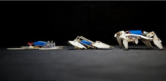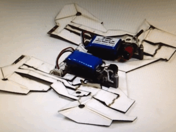 據(jù)悉,這個機(jī)器人設(shè)計源于日本的折紙藝術(shù)。平板形態(tài)采用了一種名為“剛性折紙”( rigid origami)的藝術(shù)設(shè)計方法,這種方法可以使得折紙自動折疊出可移動的足。