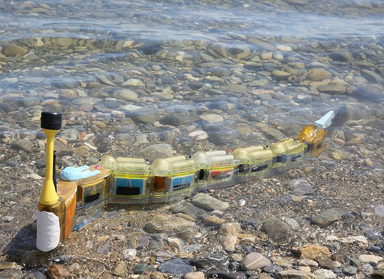 裝配了不同傳感器的機(jī)器人,可以通過遠(yuǎn)程控制或者自動(dòng)移動(dòng),研究人員在日內(nèi)瓦湖的一小片區(qū)域?qū)λM(jìn)行了測(cè)試,研究人員讓機(jī)器人在受污染的區(qū)域游泳。該機(jī)器人成功地繪制出了導(dǎo)電率的變化圖,并生成了一個(gè)溫度圖。他們最終的目標(biāo)是讓機(jī)器人能夠探測(cè)到像汞或其他污染物那樣的重金屬。
