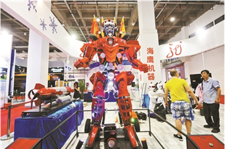 戴有京劇臉譜的3米高機(jī)器人奪人眼球