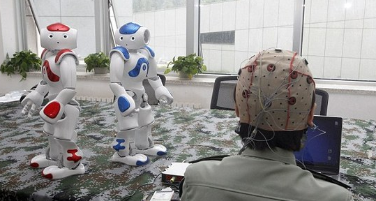 中國(guó)軍隊(duì)正訓(xùn)練學(xué)生用意念操控機(jī)器,研究人員成功研發(fā)一項(xiàng)技術(shù)能通過(guò)探測(cè)學(xué)生腦電波來(lái)控制機(jī)器人,學(xué)生可以控制機(jī)器人的肢體運(yùn)動(dòng)。官方表示這項(xiàng)技術(shù)可以為家用器具帶來(lái)一場(chǎng)新的革命。
