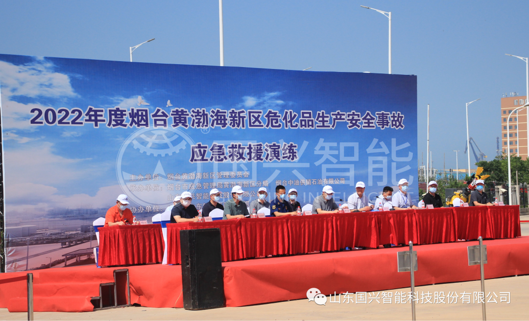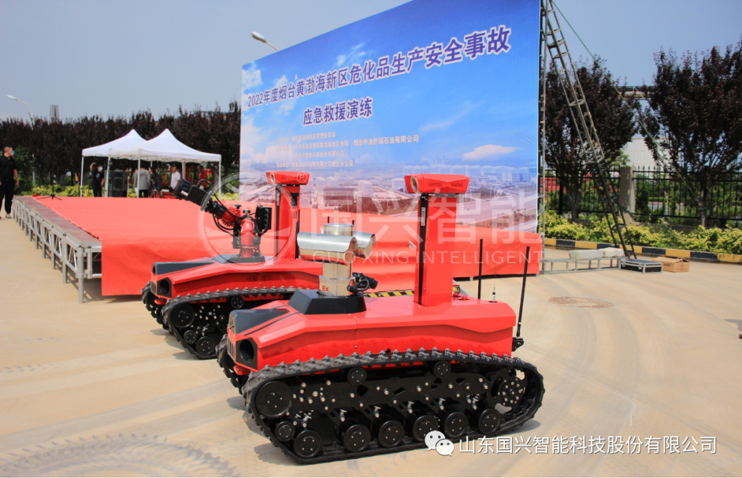 7月15日,由煙臺(tái)黃渤海新區(qū)管理委員會(huì)主辦,煙臺(tái)市應(yīng)急管理局黃渤海新區(qū)分局、煙臺(tái)中油供銷石油有限公司、山東國(guó)興智能科技股份有限公司承辦的“2022年度黃渤海新區(qū)?;飞a(chǎn)安全事故應(yīng)急救援演練”在煙臺(tái)西港舉行。國(guó)興智能自主研發(fā)設(shè)計(jì)的RXR-C6BD防爆消防偵察機(jī)器人參加此次演練。