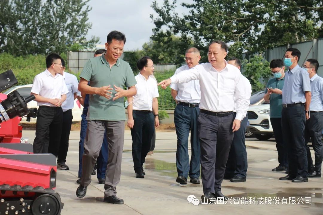 8月30日下午,煙臺市副市長韓耀東、煙臺市消防救援支隊政委李飛等在煙臺開發(fā)區(qū)管委會科技副主任陳軍陪同下到山東國興智能科技股份有限公司考察指導(dǎo)。