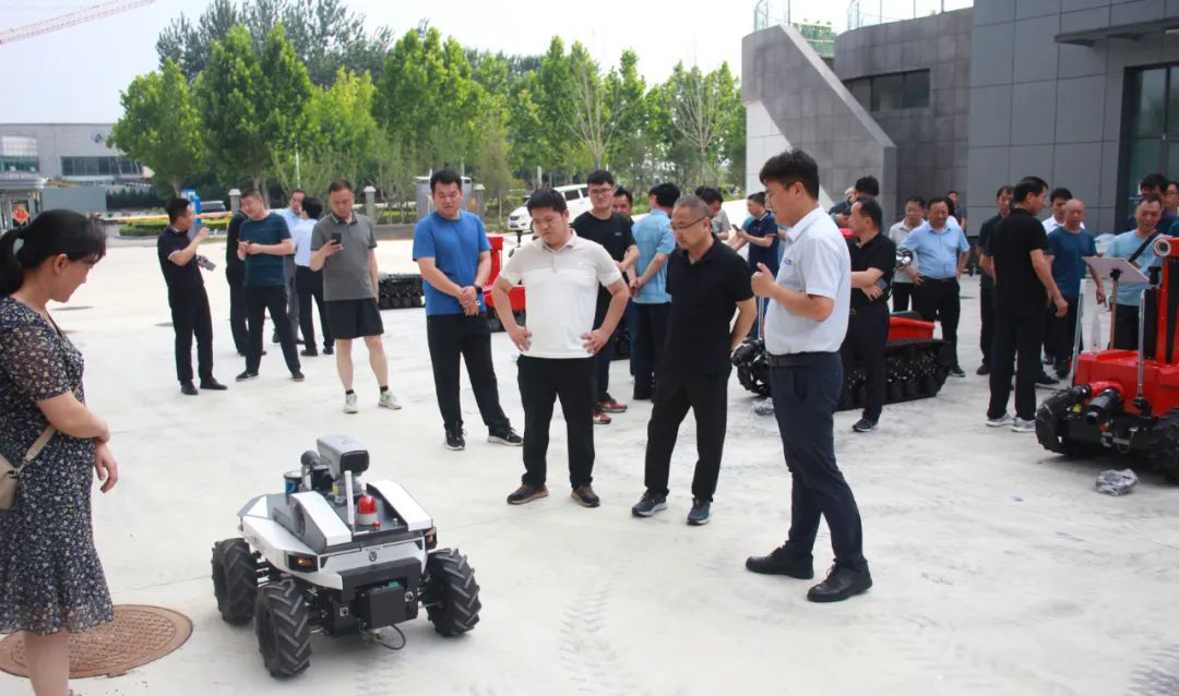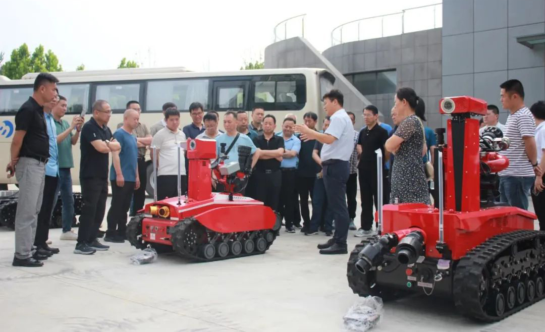在國興智能鮑明松董事長陪同下,企業(yè)領導首先參觀了國興智能的礦用消防滅火偵察機器人、防爆消防滅火偵察機器人、輪式防爆巡檢機器人、四驅(qū)燃油消防滅火機器人、舉升排煙消防機器人等礦用消防機器人系列產(chǎn)品的展示,詳細了解了國興智能近年來在煤礦機器人領域產(chǎn)品創(chuàng)新、生產(chǎn)狀況、產(chǎn)品特點以及產(chǎn)品應用場景多元化建設等,得到到訪煤礦企業(yè)領導的一致好評。