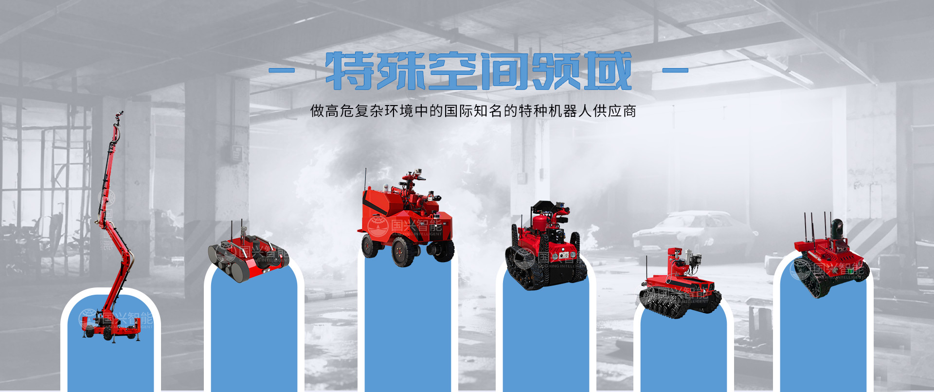 由于災(zāi)害類(lèi)型、環(huán)境、救援對(duì)象和場(chǎng)景特點(diǎn)的不同,國(guó)興智能獨(dú)辟蹊徑,研發(fā)了特殊空間領(lǐng)域特種機(jī)器人——“地下室(密閉環(huán)境)火災(zāi)救援”、“低空城市火災(zāi)救援”和“煤礦礦下火災(zāi)救援”細(xì)分類(lèi)目,高度智能化的特種機(jī)器人可以應(yīng)對(duì)各種棘手救援環(huán)境空間,達(dá)到“科技救災(zāi)”的目的。