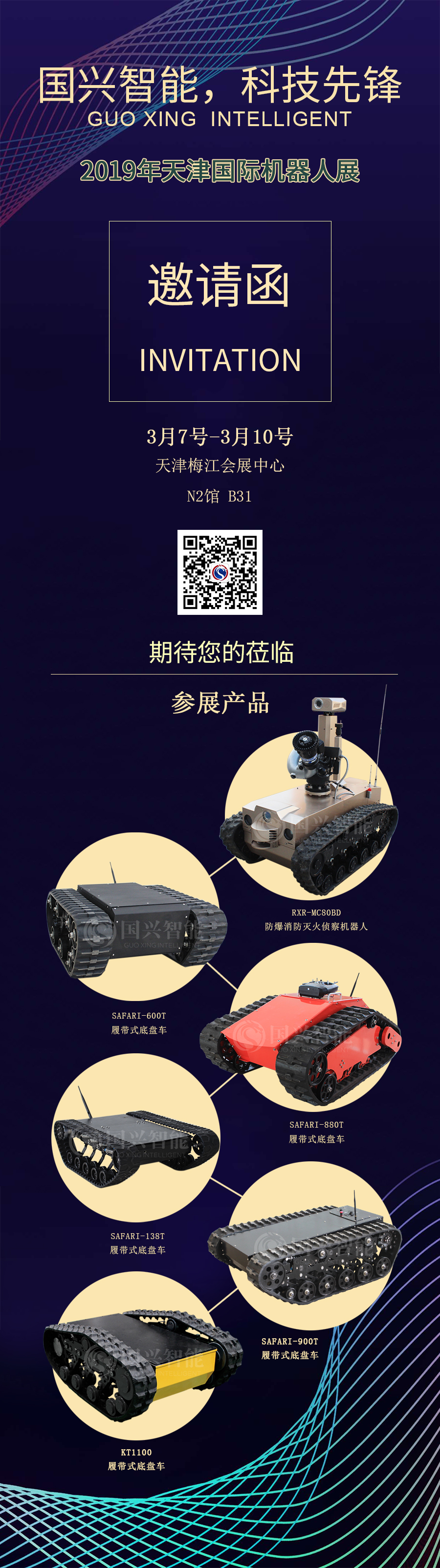 山東國興智能科技股份有限公司將于2019年3月7號至3月10號攜公司全新產(chǎn)品參加2019年天津國際機器人展,地點是天津梅江會展中心