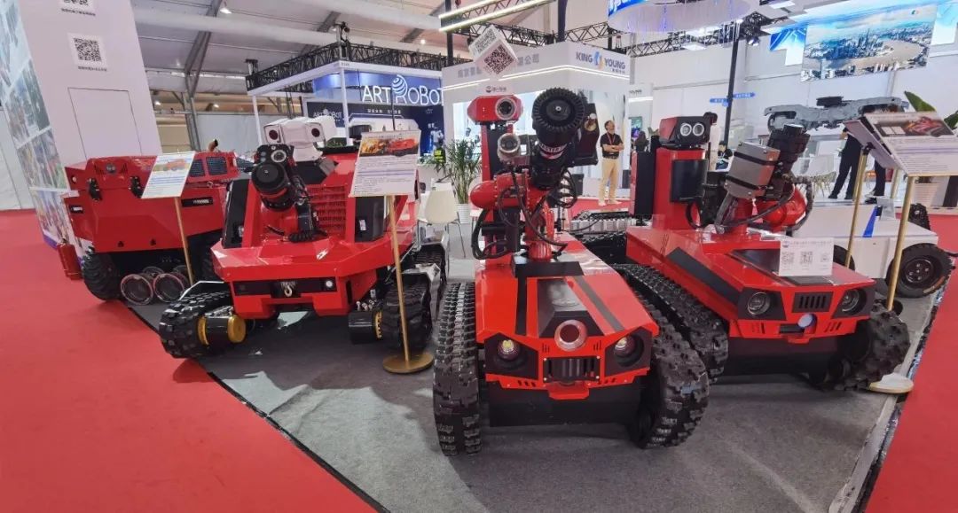 此次大會(huì),國興智能攜輪式防爆巡檢機(jī)器人、柴油機(jī)驅(qū)動(dòng)快速反應(yīng)滅火機(jī)器人、礦用消防滅火機(jī)器人、四擺臂機(jī)器人、防爆底盤等十余款產(chǎn)品亮相,簡約的外形設(shè)計(jì),強(qiáng)實(shí)用性的功能吸引了眾多觀眾,展會(huì)現(xiàn)場國興智能不僅直觀展示了前沿技術(shù)成果的應(yīng)用,也得到了行業(yè)專家、主流媒體和社會(huì)各界的廣泛關(guān)注。