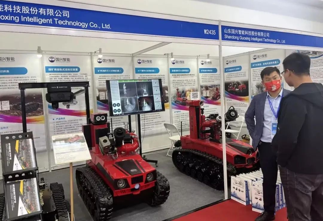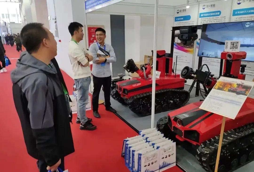 展會(huì)上,國(guó)興智能全面展示了自主研發(fā)的智慧煤礦產(chǎn)品,礦用掛軌巡檢機(jī)器人現(xiàn)場(chǎng)展示如何在既定軌道上實(shí)現(xiàn)自主拍攝、巡檢、熱成像、爬坡、檢測(cè)等功能,吸引了眾多煤炭行業(yè)從業(yè)者的關(guān)注;更有井下履帶式探測(cè)機(jī)器人、礦用消防滅火偵察機(jī)器人等產(chǎn)品現(xiàn)場(chǎng)展出,不少與會(huì)者表達(dá)出合作意愿。